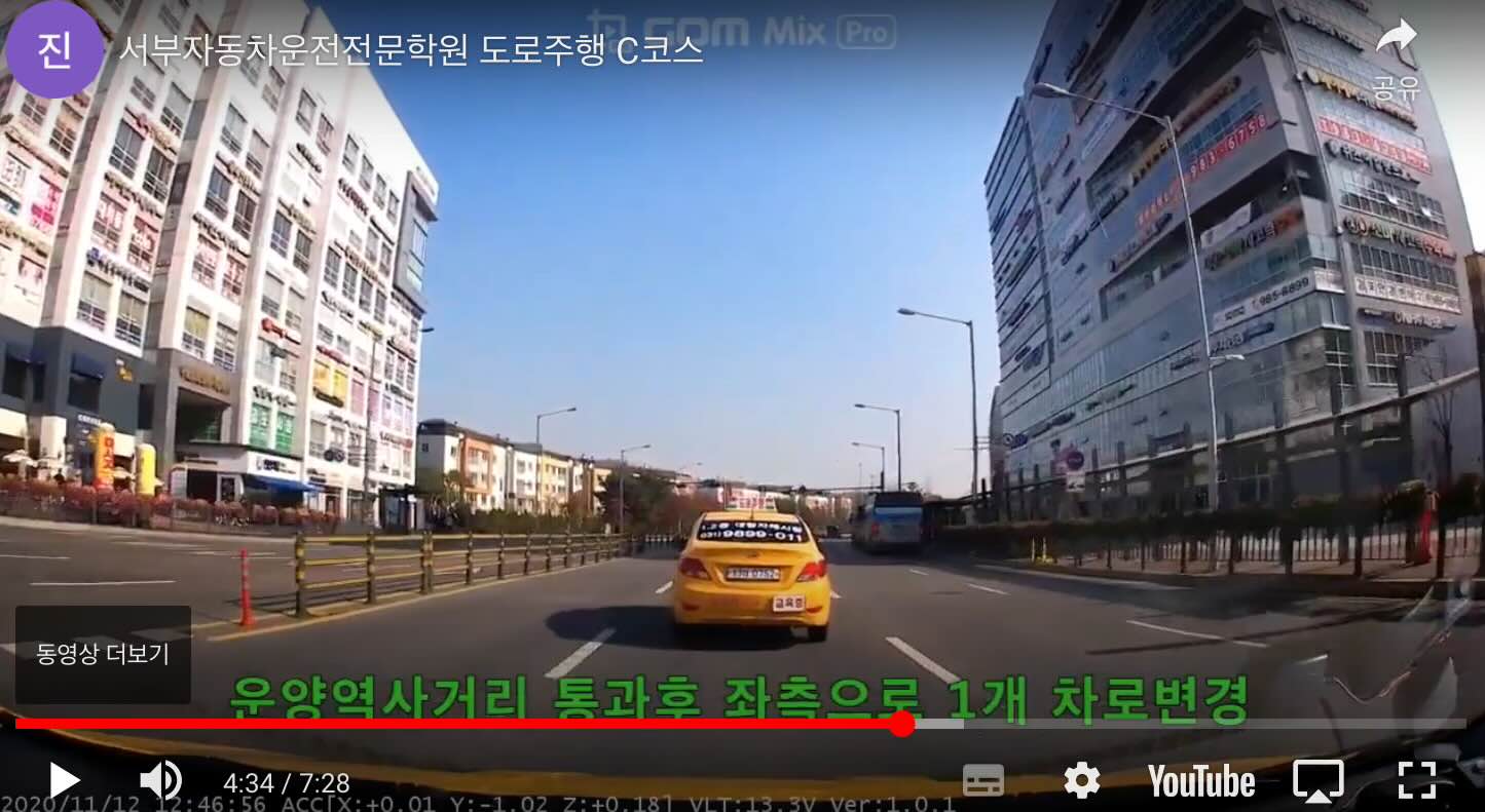 *본문에 캡쳐한 내역은 서부자동차운전전문학원 영상이 올라온 유투브에서 발췌하였으며, 문제시 삭제하겠습니다