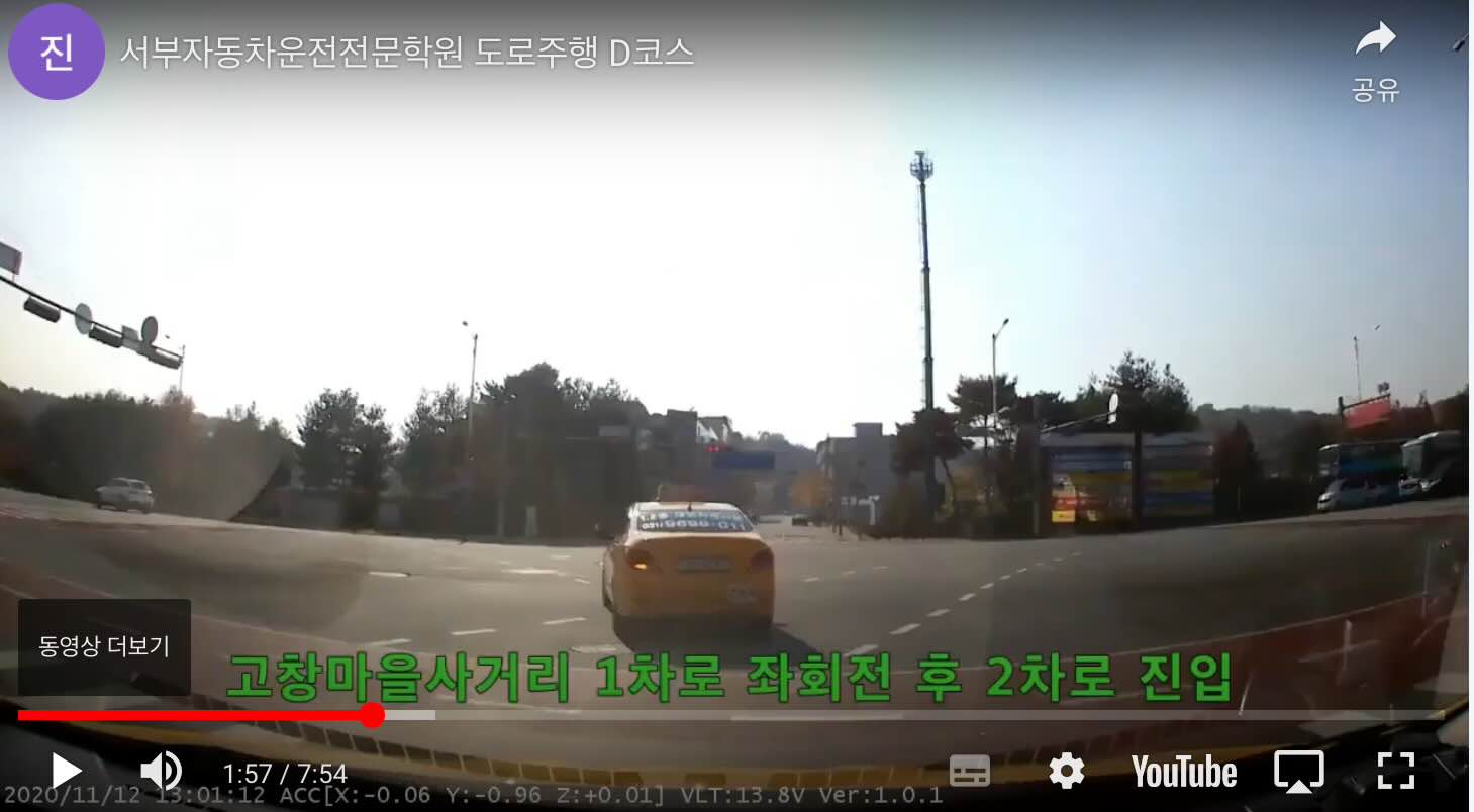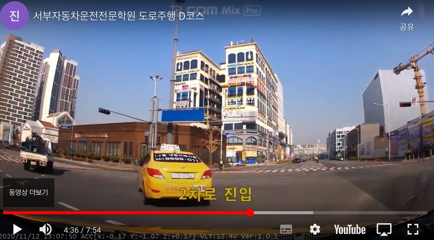 *본문에 캡쳐한 내역은 서부자동차운전전문학원 영상이 올라온 유투브에서 발췌하였으며, 문제시 삭제하겠습니다